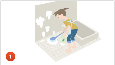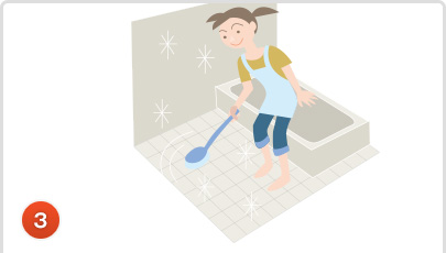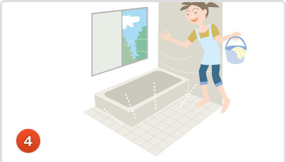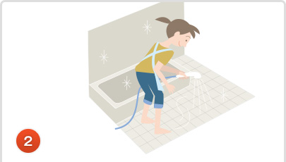 水を使用して浴室全体をひと洗いしてください。